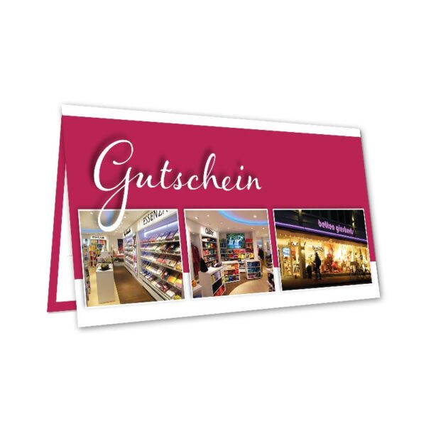 | Gutschein-Wert | 25 Euro, 50 Euro, 100 Euro, 250 Euro, 500 Euro |